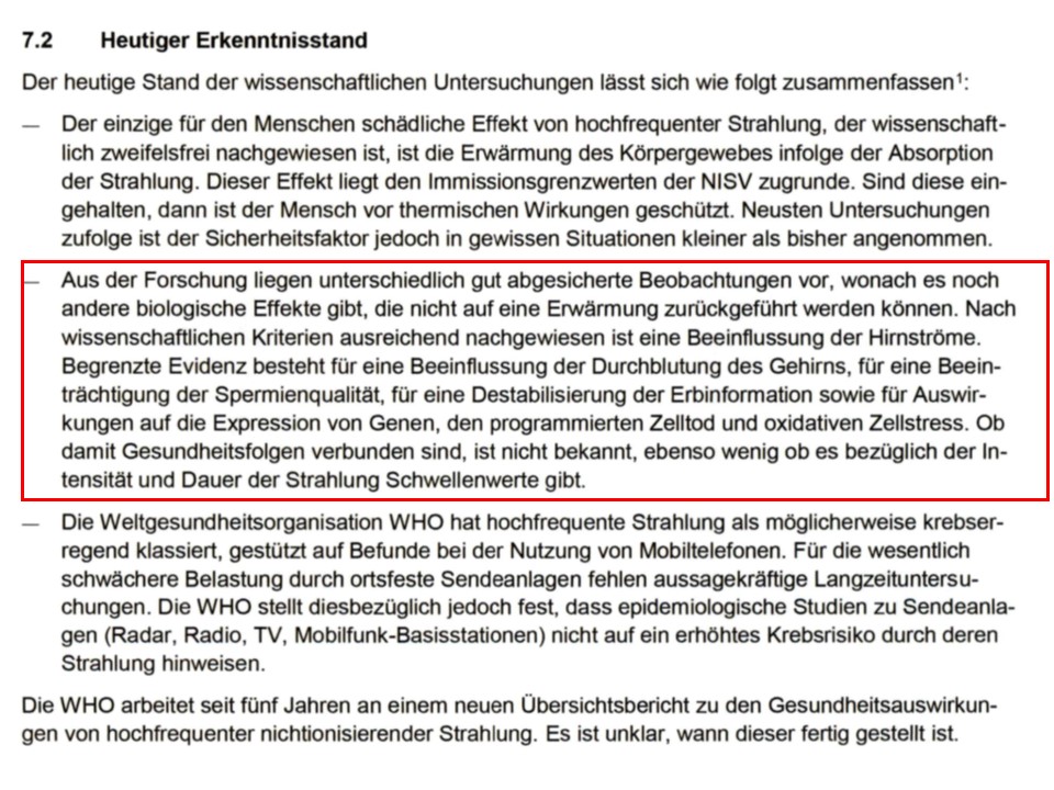 Wir haben diese bundesamtliche Aufzählung von den aus unserer Sicht gravierenden Folgen bereits im Artikel https://www.gigaherz.ch/5g-der-musterbrief-zum-baustopp/ vermittelt und damit bei unseren Lesern ungläubiges Staunen bis zu Fälschungsvorwürfen ausgelöst. Aus diesem Grund steht der entsprechende Ausschnitt als Fotografie jetzt hier.
